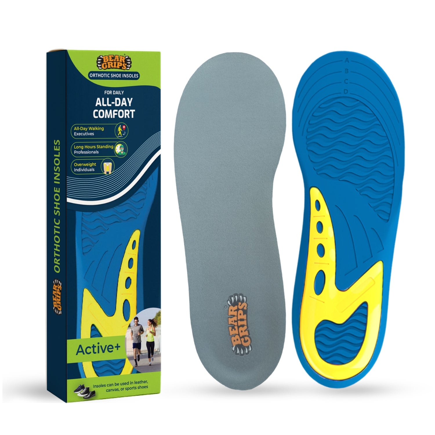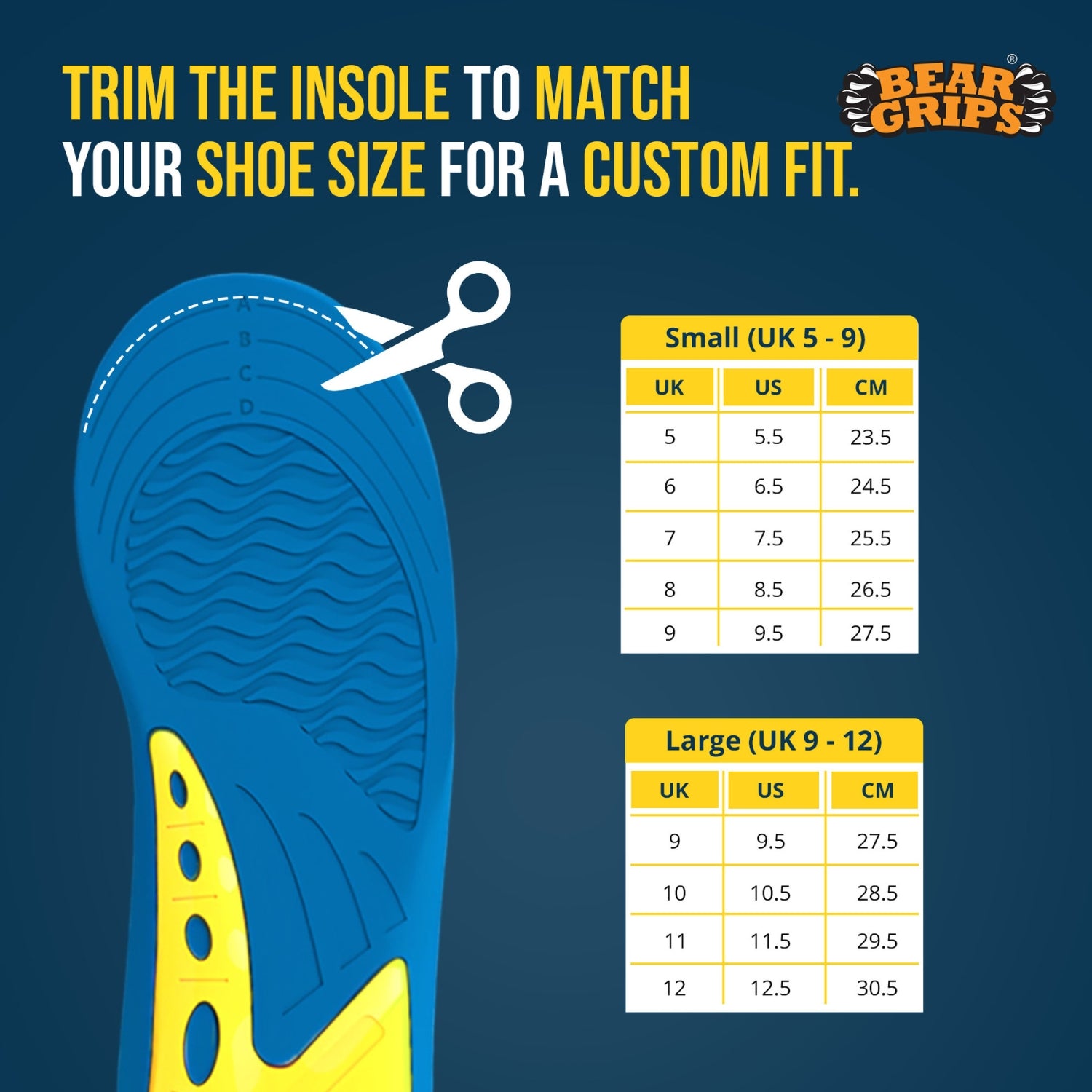 BEAR GRIPS Orthotic Shoe Insoles for All Day Comfort – Shock-Absorbing Gel & Heel Cushion for Pain Relief – Active+ Insoles | Men & Women| UK Size 5 to 9