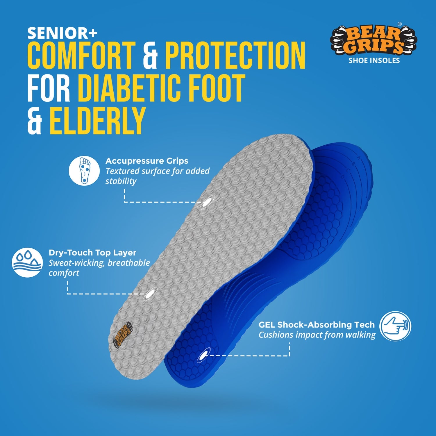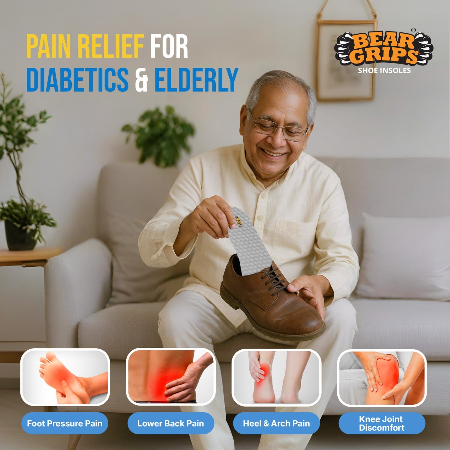 - India’s First Insole Designed for Diabetics & Seniors: The BEAR GRIPS Senior+ insole is India’s first orthotic solution built specifically for elderly and diabetic users. It’s expertly engineered to address neuropathy-related foot discomfort and improve balance. Perfect for reducing foot strain, improving comfort, and enhancing daily mobility for seniors and diabetic individuals.