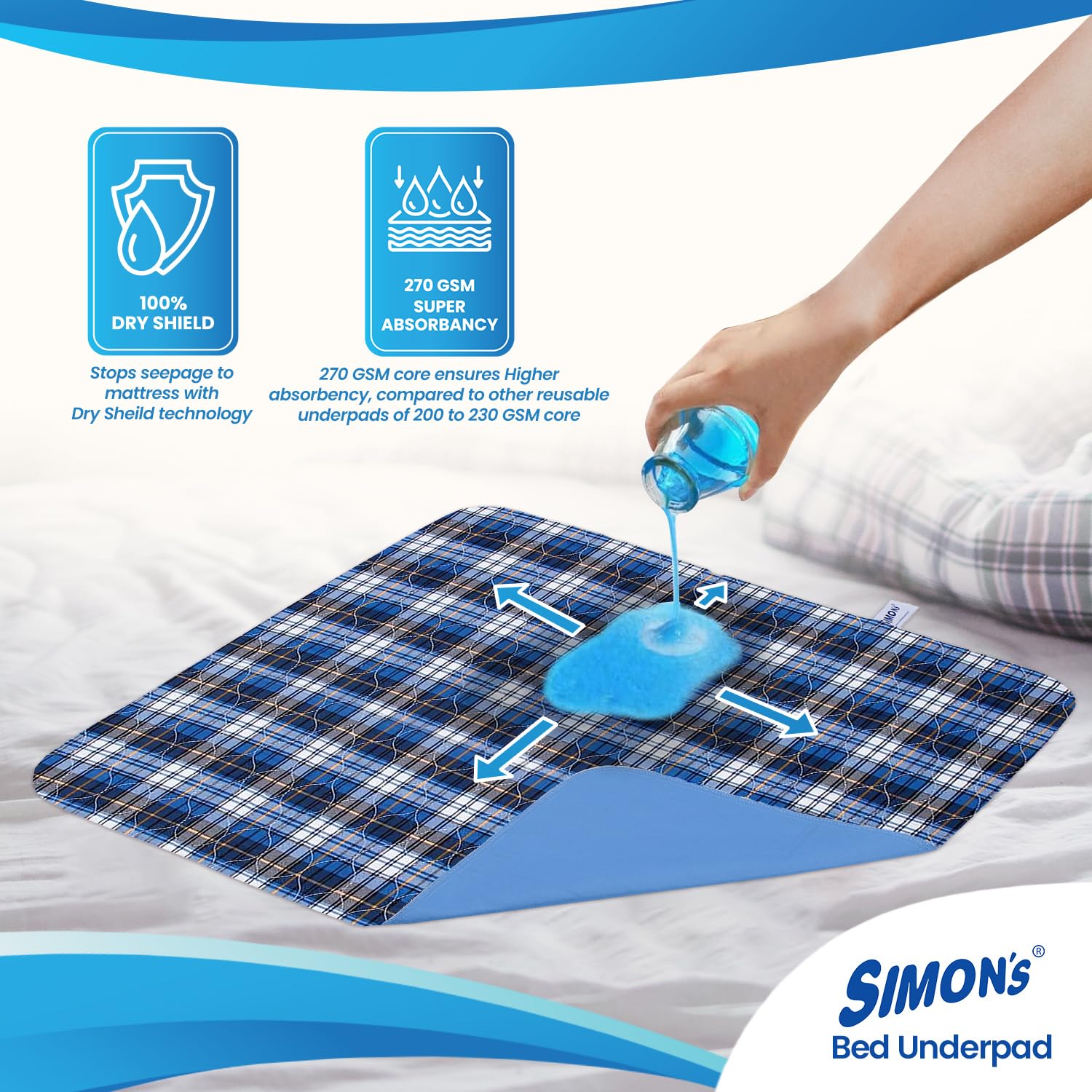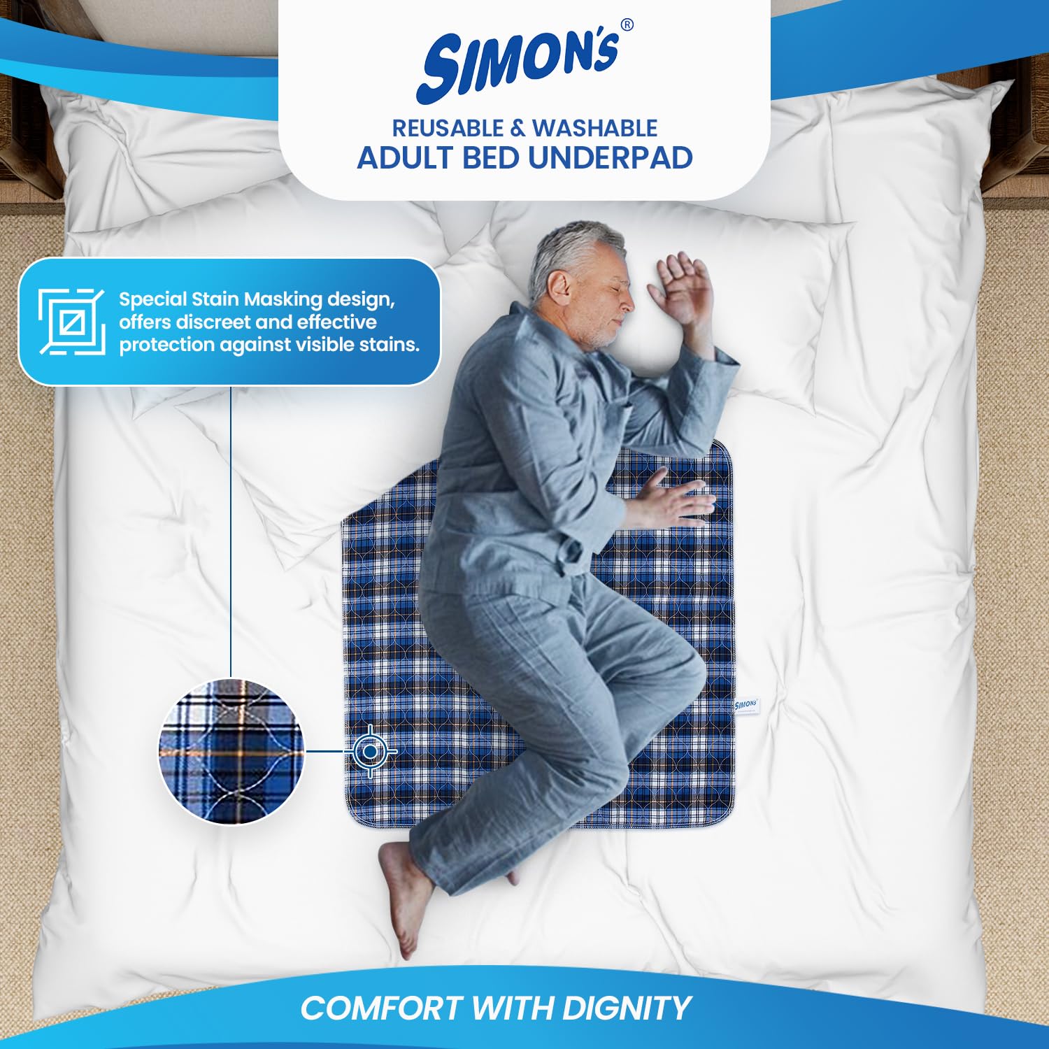 - Re-usable & Economical: Our overnight bed under pads is designed for hassle-free maintenance. It is machine washable and can withstand upto 250-300 washes or 1 year of continuous usage without losing its effectiveness. Designed to be both cost-effective and environmentally safe, 1 Simon’s Reusable Underpad equals to 250 disposable underpads, these pads provide a sustainable solution that saves you money while reducing waste.