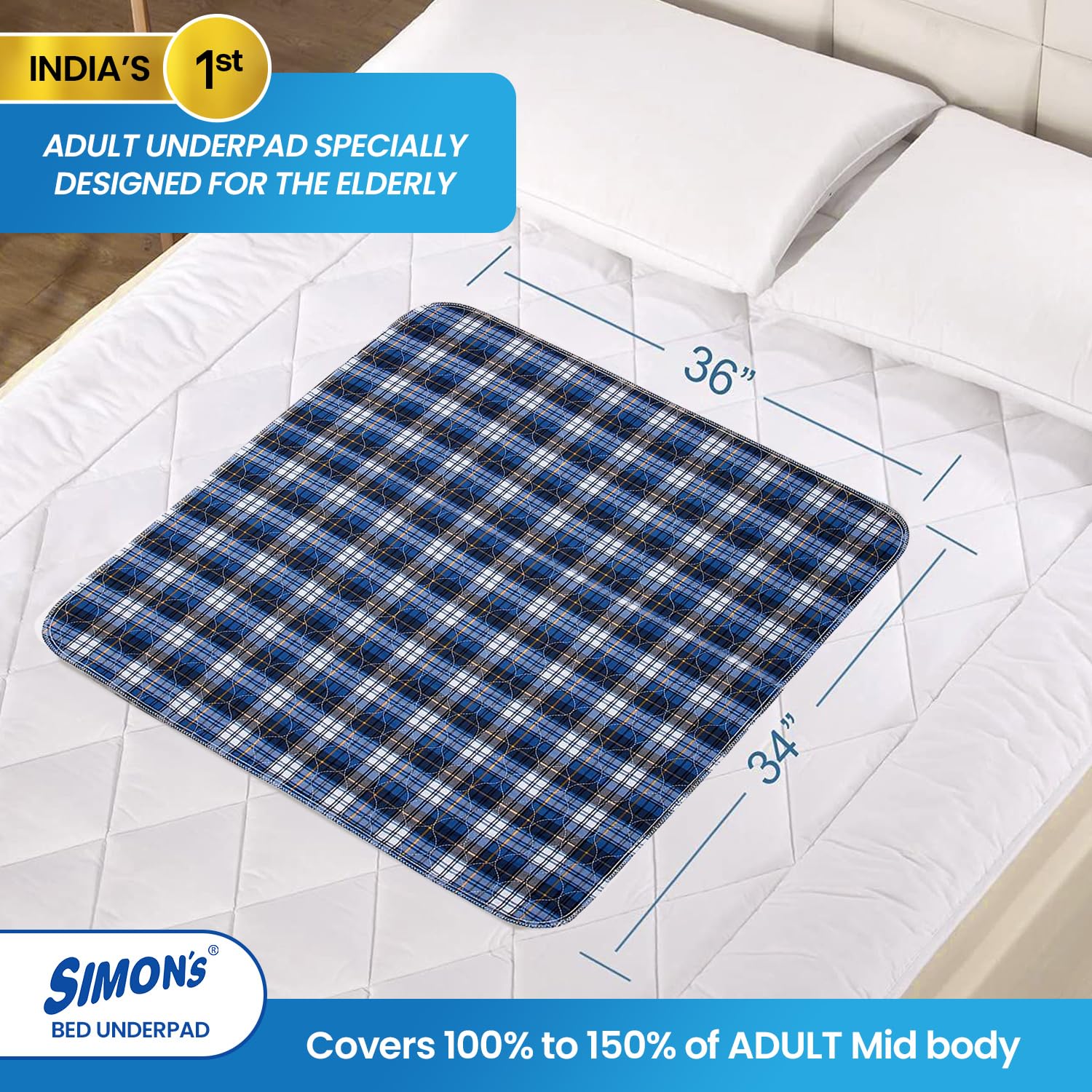 - Designed for Elderly: Incontinence is an issue faced by most elderly, in which they tend to pass urine accidentally or without restraint during sleep. Simon’s Adult uderpads is India’s 1st Underpad designed specifically for Elderly with Super High absorbency (270 GSM Soaker) and Extra-large size 34 X 36 Inches, covering 100-150% of the mid body of an adult, these underpads absorb and disperse any liquid discharge and keeps the surface Dry and protecting from any rashes.