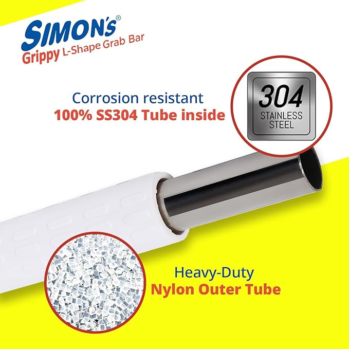 - Heay-Duty: Pack contains Simon's Dual side urinal grab bar made of Heavy-Duty Nylon outer tube and SS304 Inner tube. Double 35mm grab bars of 600 mm length on each side connected with a center cross bar of length 600 mm.