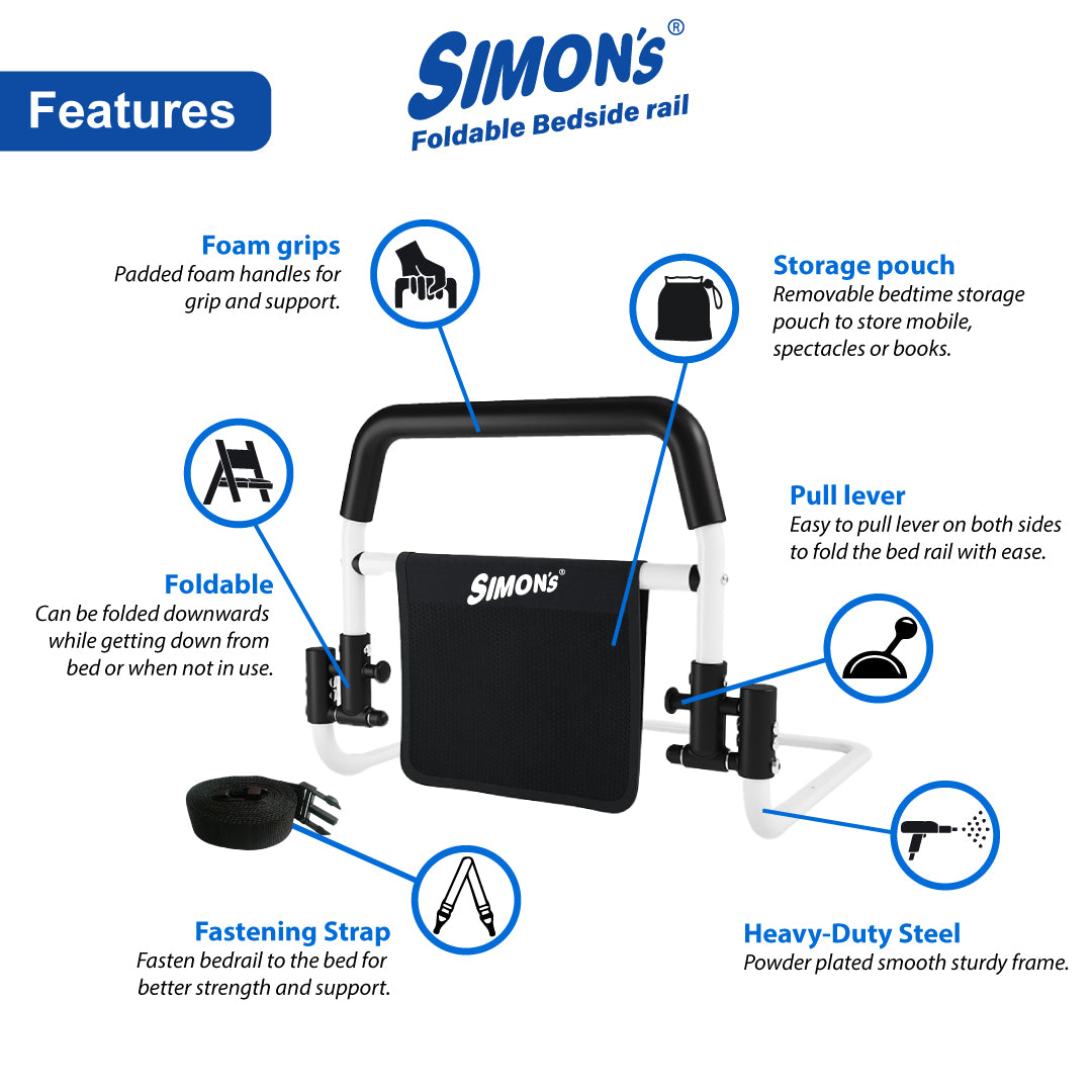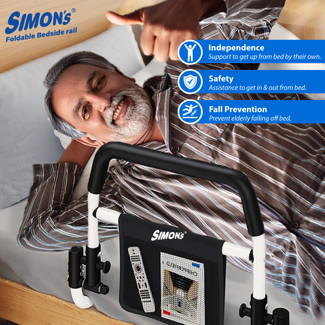 - Enhanced Safety: Crafted from robust stainless-steel, Simon?s foldable bed rail is designed to prevent falls for the elderly, Alzheimer's patients, and others with mobility issues. It provides essential support for those who find it difficult to get up from bed, ensuring assisted rising and added security