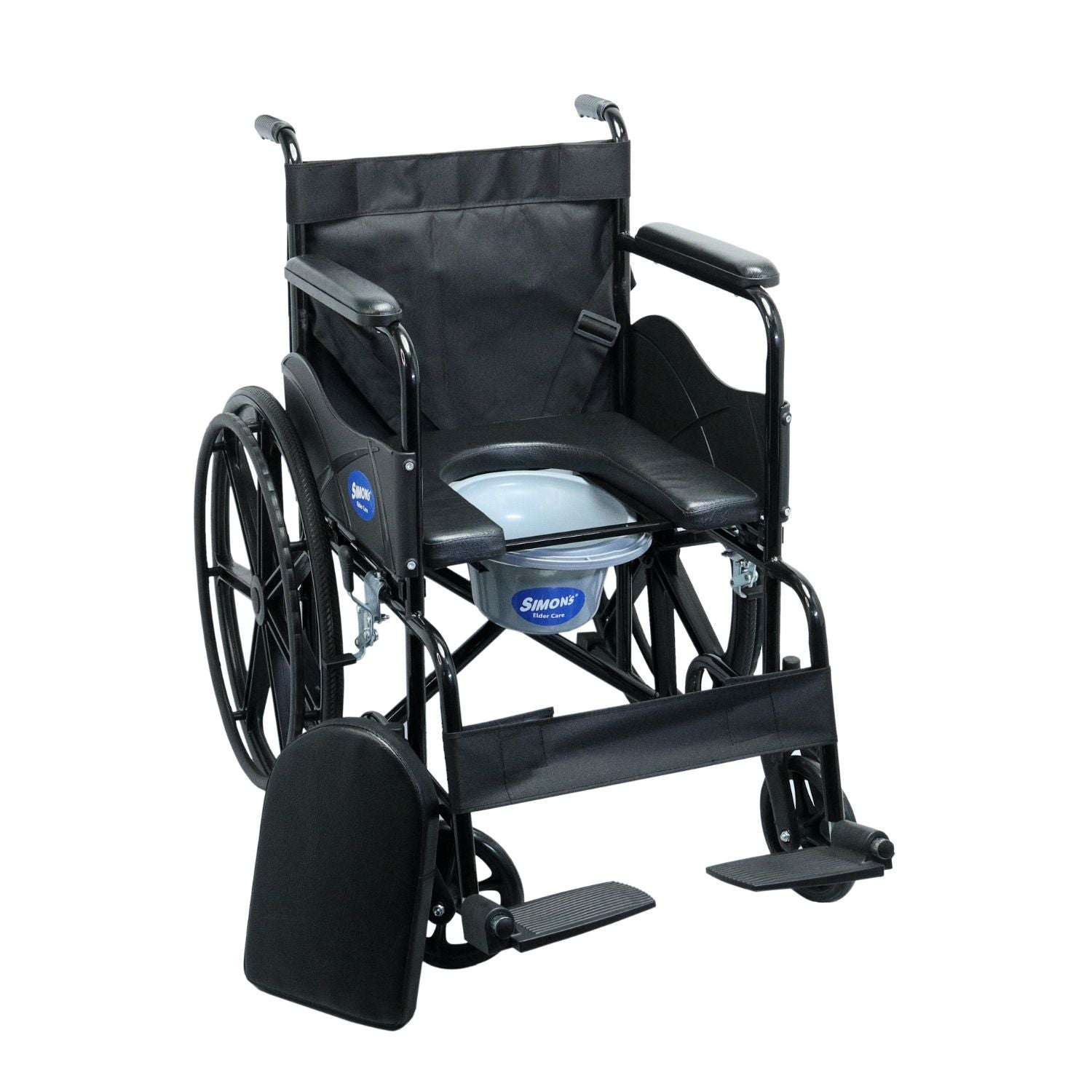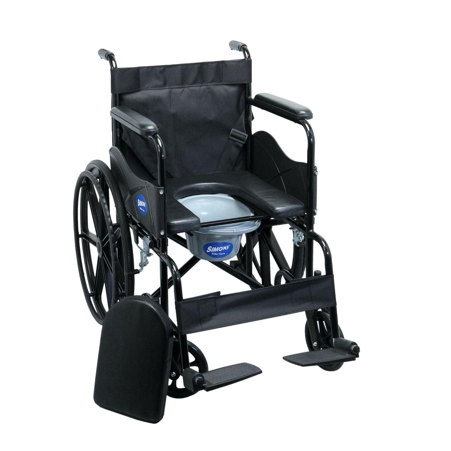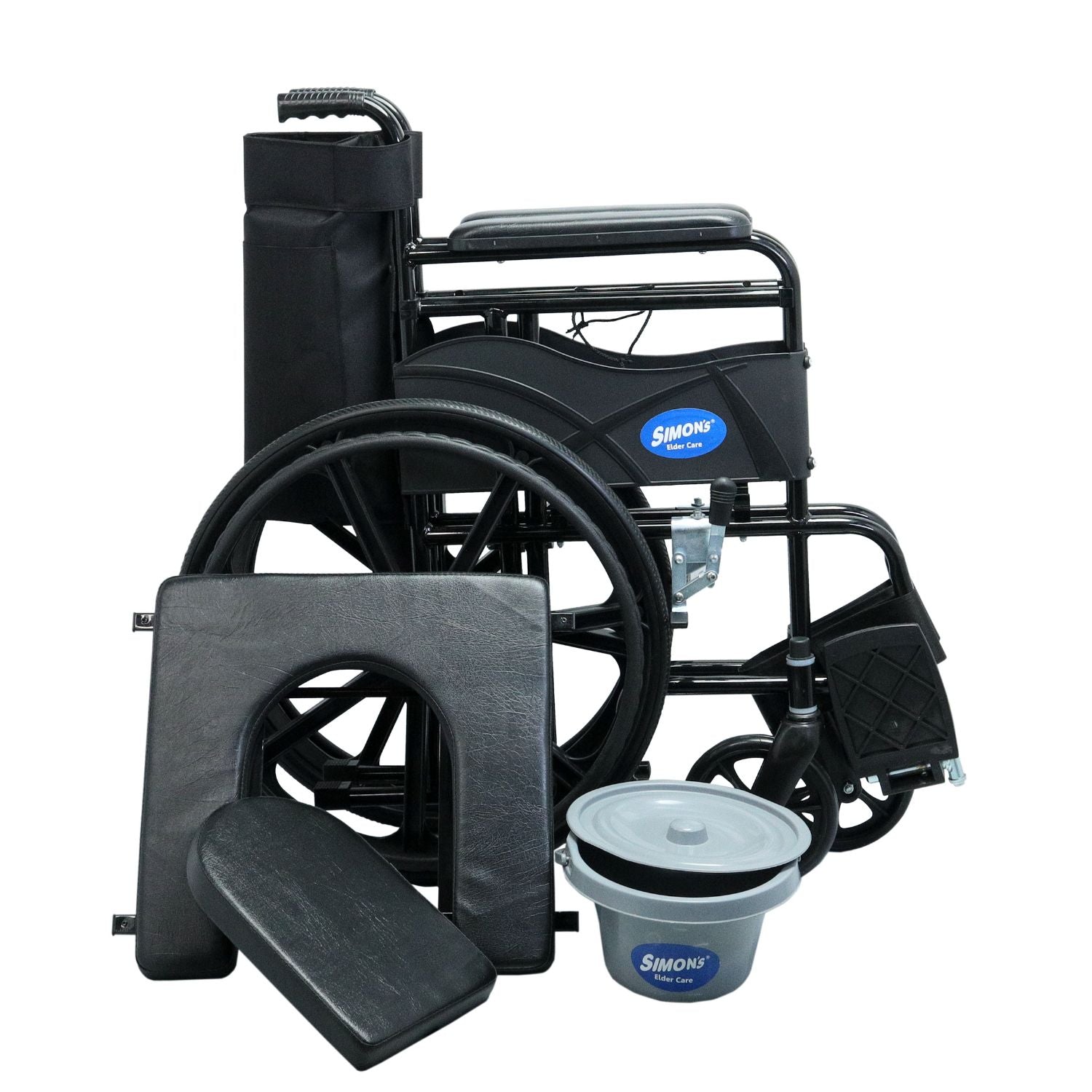 Convenient Toileting Support with U-Cut Removable Seat: The Simon’s GlidePro Folding Commode Wheelchair is designed to provide both easy mobility and effective toileting support for elderly, handicapped, and patients. Featuring a U-Cut removable seat, this wheelchair offers easy access to the commode, allowing users to comfortably use the wheelchair without needing to remove the full seat. The commode bucket can be effortlessly removed without requiring the patient to stand, providing both comfort and hygiene in one solution.