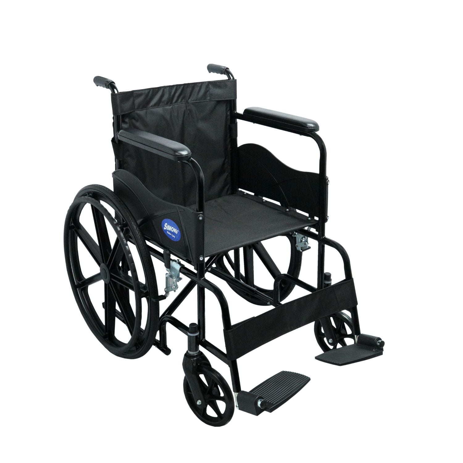 Durable and Stylish Construction: Built to last, the Simon’s GlidePro features a Steel powder-coated black finish, offering both durability and a sleek, modern look. Made in India, this wheelchair combines local craftsmanship with high-quality materials for long-lasting performance. The sturdy frame and robust design make it perfect for daily use, withstanding wear and tear while maintaining its stylish appeal.