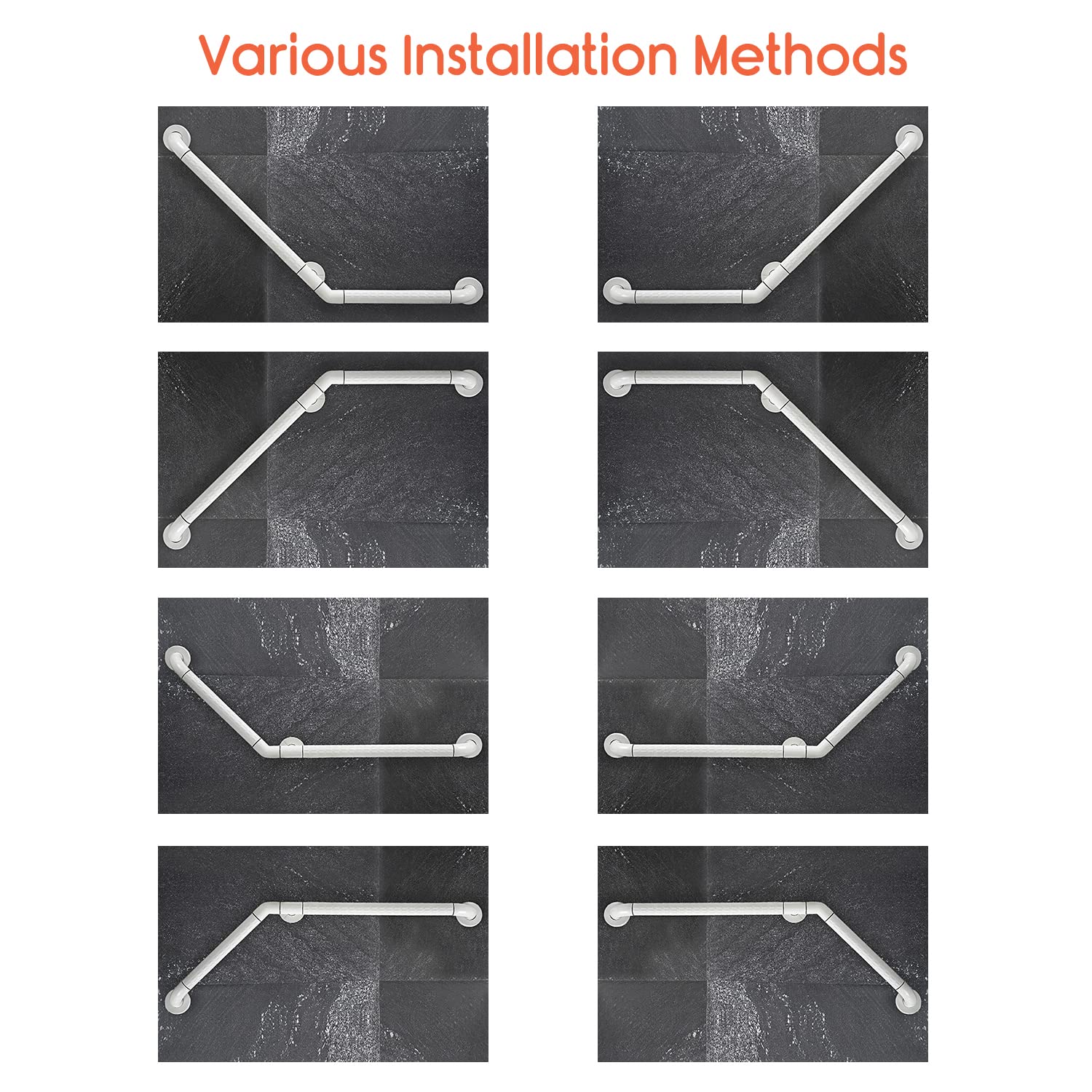 - Versatile usage: The Simon’s Grippy L-Shape 135 degree grab bar can be used at variety of location as per the usage. it can be fixed next to the toilet for assistance to get up by pulling horizontally or pushing downwards vertically or for gradual rising. It can be used below the shower area for the elderly to hold vertically or horizontally, This grab can be fixed in 4 different positions s per the requirement of railing and support.