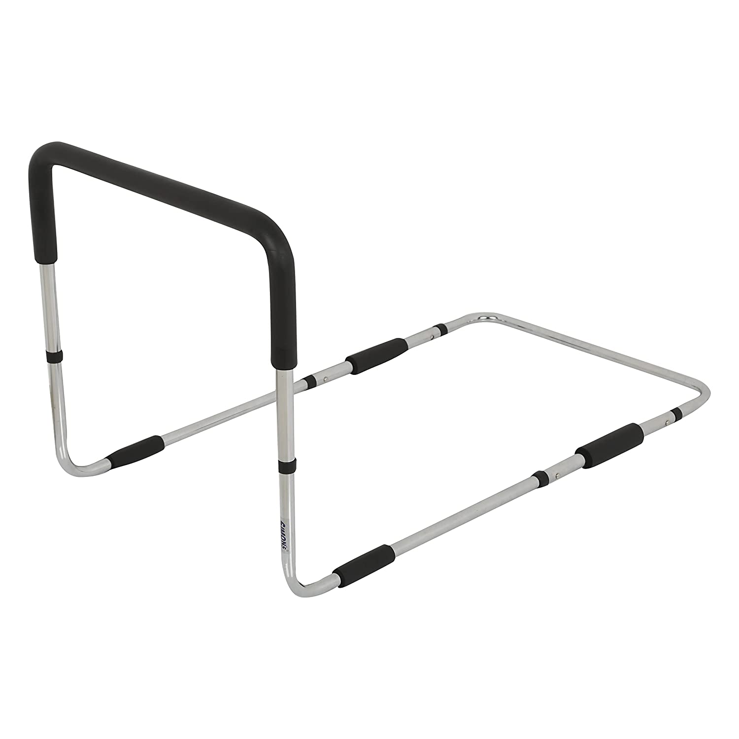 - The bed rail safety grab bar is suitable for single, double, and king-size beds alike. It comes along with an adjustable safety strap for added stability. The handle has 5 adjustable height options to suit the requirement.